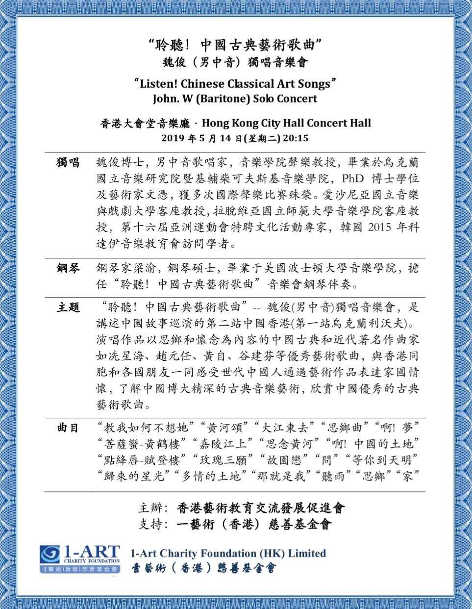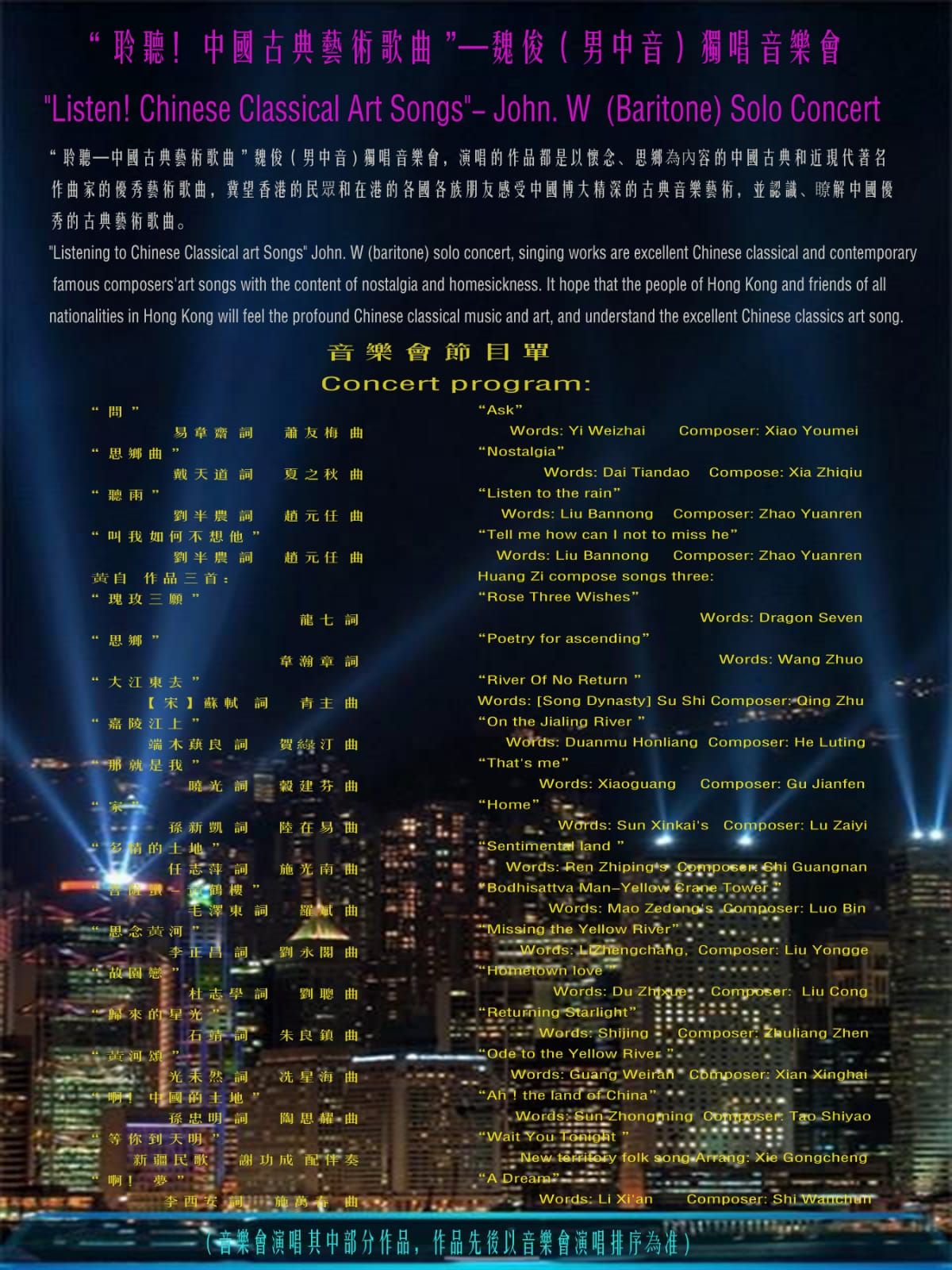 “Listen ! Chinese Classical Art Songs” John. W (Baritone) Solo Concert